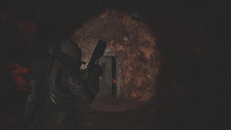 Após encontrar essas armas, você pode melhorá-las nas safe rooms espalhadas pelo mapa, salas que funcionam exatamente como as de Resident Evil. Nessas salas, você pode salvar o jogo, armazenar seus itens em um baú, vender os itens colecionáveis que encontrar e melhorar seu traje e armas com dinheiro e um item chamado núcleo (que eu recomendo usar para aumentar o espaço do inventário).