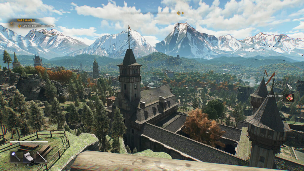 O parque de diversões da vez é Castor Woods, uma pequena cidade europeia cercada por montanhas. Ela é dividida entre áreas urbanas, com casas, uma igreja e um hospital, e grandes áreas rurais, semelhantes à dlc The Following, com grandes florestas encantadoras e fazendas. Correr por Castor Woods imediatamente me lembrou do primeiro game e da importância de se manter nos telhados. Todas as ruas e vielas estão recheadas de infectados, esperando você dar um pequeno deslize para te matar em segundos. Castor Woods não é tão grande quanto Harran ou Villedor, consequência do jogo ser originalmente uma expansão.