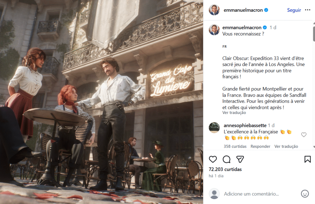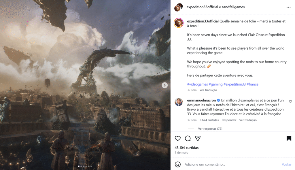 Um milhão de cópias vendidas e, até hoje, um dos jogos mais bem avaliados da história: sim, é francês! Parabéns à Sandfall Interactive e a todos os criadores do Expedition 33. Vocês estão divulgando a ousadia e a criatividade à francesa.